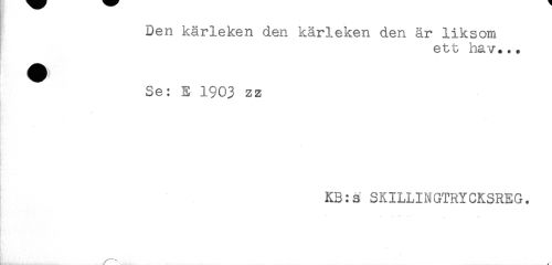 //// Den kärleken den kärleken den är liksom //// ett hav... //// Se: E 1903 zz //// KB:s SKILLINGTRYCKSREG. //// - * " //// //// /