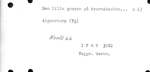 //// Den lille gossen på kvarnabacken... s 43 //// * //// Algutstorp (Vg) //// -T //// i y G H 3582 //// Vaggv. bamv. ////
