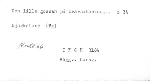 //// Den lille gossen på kvärnabacken.., s 34 //// Björketorp (Vg) //// I F G H 3134 //// Vaggv. barnv. ////