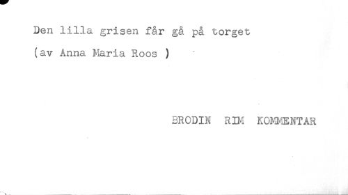 //// Den lilla grisen får gå på torget //// (av Anna Maria Roos ) //// BRODIN RIM KOMMENTAR //// * ////
