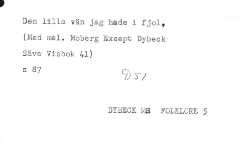 //// Den lilla vän jag hade i fjol, //// (Med mel. Moberg Except Dybeck //// Säve Visbok 41) //// s 37 r //// ^ i //// /