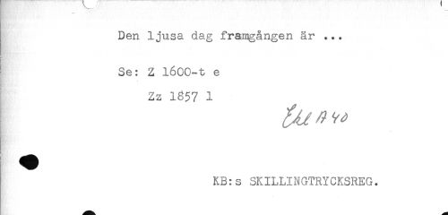 //// Den ljusa dag fraingången är ... //// Se: Z 1600-t e //// Zz 1657 1 //// _ ////