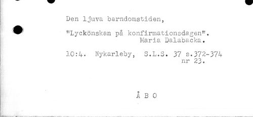 //// Den ljuva barndomstiden, //// "Lyckönskan på konfirmationsdagen". //// Maria Dalabacka. //// 10:4- Nykarleby, S.L.S. 37 s.372-374 //// nr 23. ////