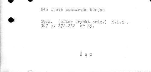 //// Den ljuva sommarens början //// ^ 29:4- (efter tryckt orig.) S.L.S . //// 367 s. 272-282 nr 85. //// Å 3 0 ////