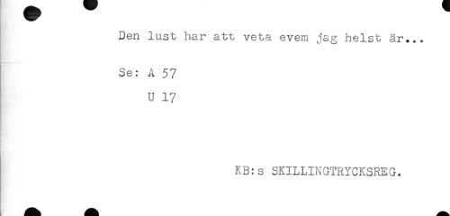 //// Den lust har att veta evem jag helst är... //// Se: A 57 //// U 17 //// g ////