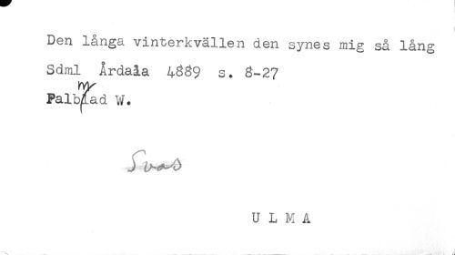 //// Den långa vinterkvällen den synes mig så lång //// Sdml Årdaia 4889 s. 8-27 //// PalMad W. //// ' U L M A //// ... ////