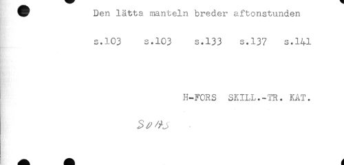 //// ^ Den lätta manteln breder aftonstunden //// S.103 s.103 s.133 S.137 s.141 //// H-FORS SKILL.-TR. KAT. //// * . //// - //// 3 ^ ////