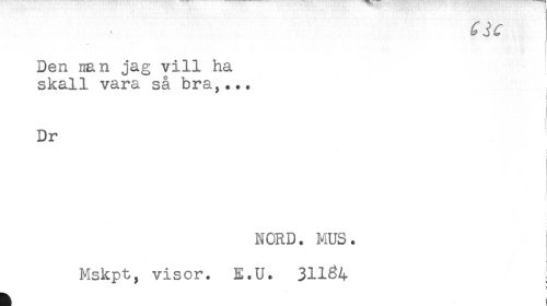 //// ' - //// Den nan jag vill ha //// skall vara så bra,... //// Dr //// NORD. MUS. //// Mskpt, visor. E.U. 311^4 ////