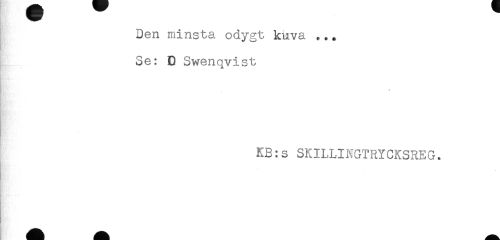 //// Den minsta odygt kuva ... //// Se: 0 Swenqvist //// * //// - //// KB:s SKILLINGTRYCKSREG. //// - //// c ////