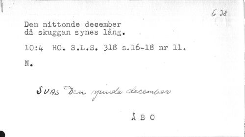 //// Den nittonde december //// då skuggan synes lång. //// 10:4 HO. S.L.S. 31^ s.l6-l6 nr 11. //// i //// N. //// * //// ÅBO //// * ___ ////