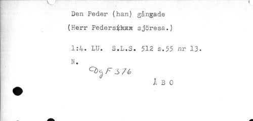 //// * //// ^ ^ Den Peder (han) gångade //// <* //// (Herr Peders^3^K sjöresa.) //// 1:4. LU. S.L.S. 512 s.55 nr 13. //// N. //// ÅBO //// * ////