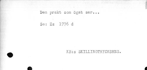 //// Den prakt som ögat ser... //// Se: Zz 1776 d //// ^ KB:s SKILLINGTRYCKSREG. ////