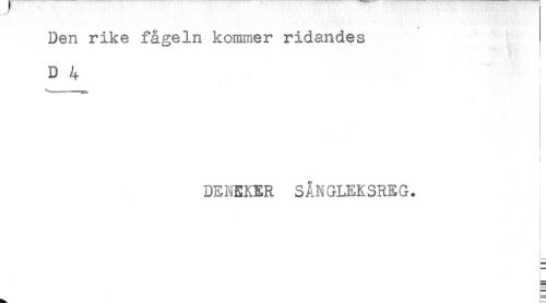 //// * ' //// Den rike fågeln kommer ridandes //// D 4 //// i //// - //// i //// ! //// i //// DENEKER SÅNGLEKSREG. ////