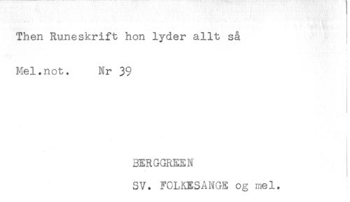 //// Then Runeskrift hon lyder allt så //// Mel.not. Nr 39 //// ) //// ! //// ! //// BERGGREEN //// SV. FOLKESANGE og mel. ////