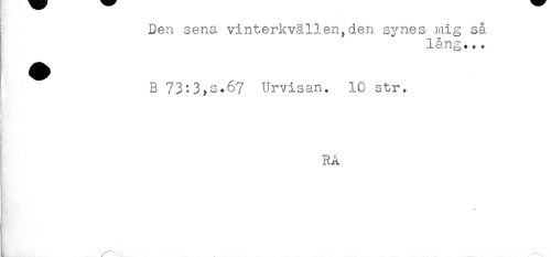 //// ; Den sena vinterkvällen,den synes mig så //// lång.,. //// ^ B 73t3;S*67 Urvisan. 10 str. //// i //// t //// i! //// RA ////