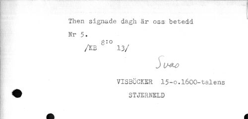 //// Then signade dagh är oss betedd //// - - //// Nr 5. //// /KB 13 //// /J //// VISBÖCKER 15-o.l600-talens //// W STJERNELD ////