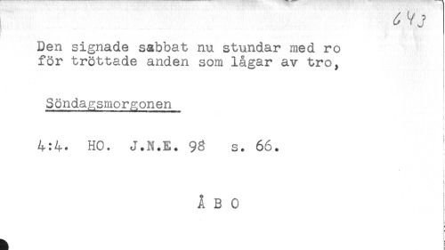 //// ^ YJ //// Den signade sabbat nu. stundar med ro //// för tröttade anden som lågar av tro, //// . //// ! //// t //// Söndagsmorgonen //// t //// < //// 4:4. HO. J.N.E. 9g s. 66. //// i ////