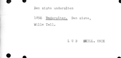 //// Den sista undersåten //// 1^90 Undersåten. Den sista, //// Wille Tell. //// * //// L U B SKILL. UNIK ////