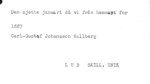 //// ) //// < //// Den-sjette januari då vi från hemmagt for //// 1337 //// Carl-Gustqf Johansson Hallberg //// L U B SKILL. UNIK ////