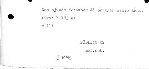 //// Den sjunde december då skuggan synes lång. //// ^ (Svas N I834n) //// s 111 //// SÖDLING MS //// mel.not. ////