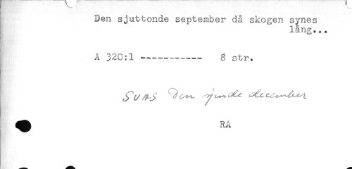 //// Den sjuttonde september då skogen synes //// lång... //// A 320:1 --- 8 str. ////