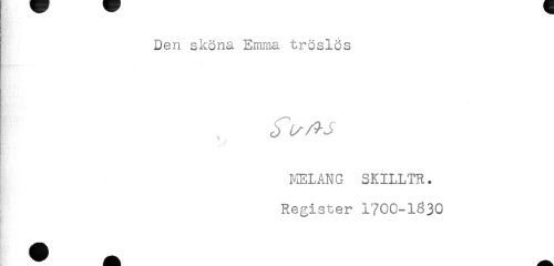 //// Den sköna Emma trösiös //// MELANG SKILLTR. //// Register 1700-1^30 ////