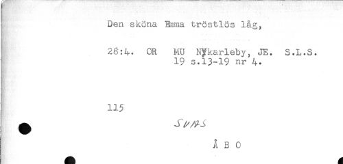 //// t Den sköna Enma tröstlös låg, //// I 28:4. OR MU N^karleby, JE. S.L.S. //// ] 19 s.13-19 nr 4. //// i ^ ////