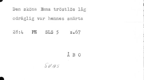 //// Den sköna Exma tröstlös låg //// odräglig var hennes smärta //// i //// ! //// < //// < //// 28:4 PE SLS 5 s.67 //// ! //// i //// . //// i //// < //// F //// ÅBO //// ! ////