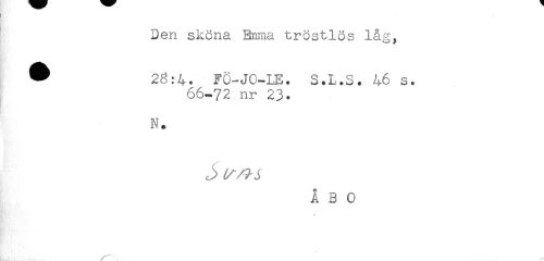 //// Den sköna Burna tröstlös låg, //// ^ 28:4. Fö-JG-LE. S.L.S. 46 s. //// 66-72 nr 23. //// N. //// ^ ^ //// ÅBO ////