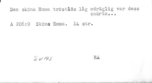 //// Den sköna Emma tröståös låg odräglig var dess //// smärta... //// A 206:9 Sköna Emma. 14 str. //// ^ J RA ////