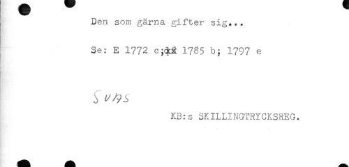 //// Den som gärna gifter sig... //// Se: E 1772 c;<iÉ 1735 b; 1797 e //// KB:s SKILLINGTRYCKSREG. ////