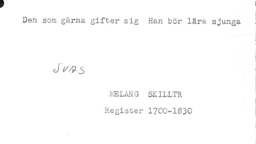//// Den som gärna gifter sig Han bör lära sjunga //// < //// i //// J 3 //// ! //// &ELÅNG SKIiLTR //// Register 1700-1830 ////