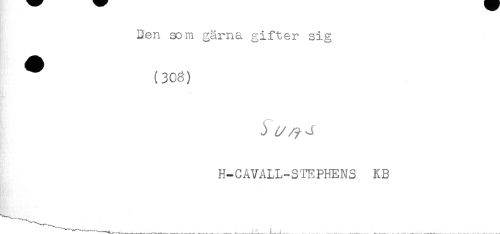 //// Den som gärna gifter sig //// ^ (303) //// j t //// /H-CAVALL-STEPHENS KB ////