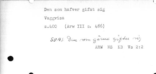 //// Den som hafver gifat sig //// Vaggvisa //// s.400 (Arw III s. 4^6) //// ARW MS KB Vs 2:2 ////