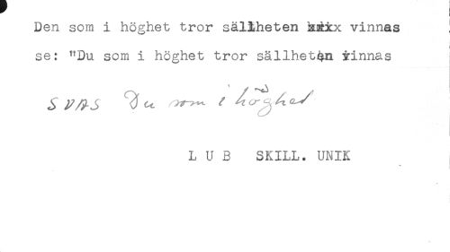 //// Den som i höghet tror säliheten h±xx vinnas ' //// < //// se: "Du som i höghet tror sällhet^m iinnas //// L U B SKILL. UNIK //// < ////