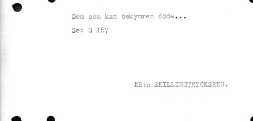 //// Den som kan bekymren döda... //// Se: G 167 //// K&* * //// - //// KB:s SKILLINGTRYCKSREG. //// - ** . ////