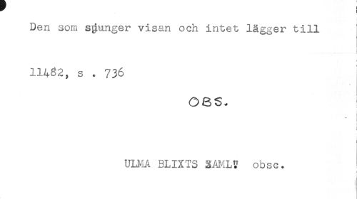 //// ^ ! //// i //// Den som sjunger visan och intet lägger till //// i //// < //// 11482, s . 736 //// OBS. //// j //// i //// ) //// ULMA BLIXTS SAULV obsc. //// ! //// i ////