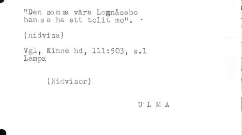 //// "Den som sa vära Lognåsabo ' //// han sa ha ett tolit mo^^. * ' //// (nidvisa) //// Vgl, Kirme hd, 111:503, s.l } //// Lampa //// (Nidvisor) //// t //// U L MA //// ! //// ) ////