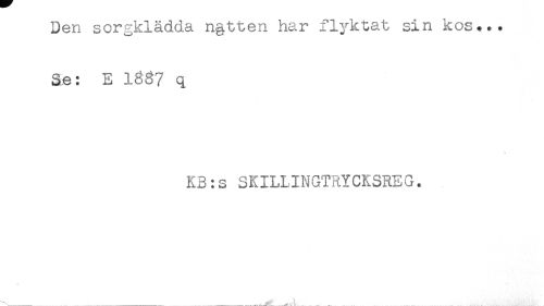 //// Den sorgklädda n§tten har flyktat sin kos... //// Se: E 1^87 q //// KB:s SKILLINGTRYCKSREG. //// f //// ---... ... ////