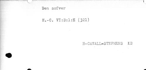 //// Den sofver //// H.-C. VI:B:1:E (321) //// ' //// H-CAVALL-STEPHENS KB ////