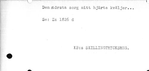 //// Densbörsta sorg mitt hjärta kväljer... //// Se: Zz 1826 d //// * //// . //// KB:s SKILLINGTRYCKSREG. //// * — - - , ////
