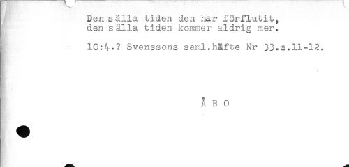 //// I Den sälla tiden den har förflutit, //// den sälla tiden kommer aldrig mer. //// 10:4^? Svenssons saml.häfte Nr 33.s.11-12. //// ÅBO ////