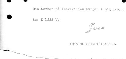 //// Den tanken på Amerika den börjar i mig gro... //// ^ Se: E 1838 bb //// KB:s SKILLINGTRYCKSREG. ////