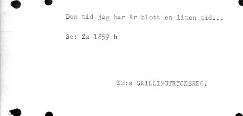 //// Den tid jag har är blott en liten tid... //// Se: Zz 1859 h //// KB:s SKILLINGTRYCKSREG. ////