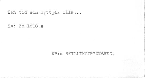 //// t. //// Den tid som nyttjas illa... //// t //// Se: Zz 1600 e i //// t //// r //// [ //// ! //// * //// KB:a SKILLINGTRYCKSREG. //// ! //// t ////
