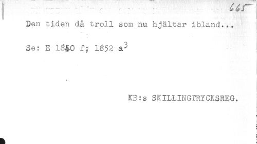 //// R "" ' ' ? ' r - - - - - -.....- A A //// - - . - - ^ - . . ' i' //// Den tiden då troll som nu hjältar ibland... //// i //// f > //// .. * * , //// Se: E IR^O f; 1852 a^ //// KB:s SKILLINGTRYCKSREG. //// i //// ! //// - //// L //// H //// i //// 0 //// ä i ////