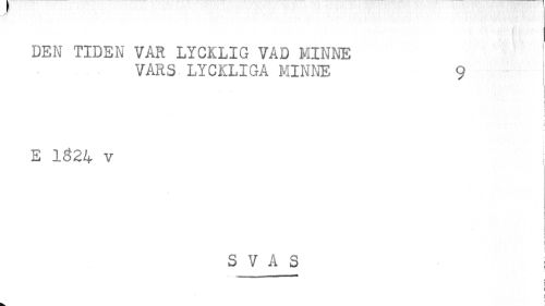//// DEN TIDEN VAR LYCKLIG VAD MINNE //// VARS LYCKLIGA MINNE 9 //// i //// E 1824 v //// < //// ! //// < //// S V A S ////