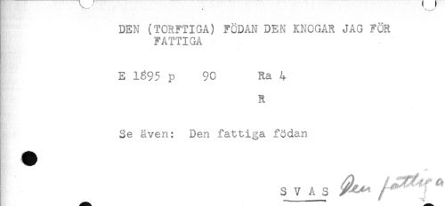 //// DEN (TORFTIGA) FÖDAN DEN KNOGAR JAG FÖR //// FATTIGA //// ! E 1895 p 90 Ra 4 //// R //// ! //// Se även: Den fattiga födan //// S V A S ^ /" ////