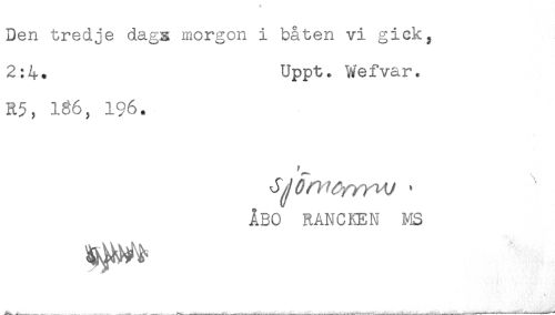 //// Den tredje dags morgon i båten vi gick, //// 2:4. Uppt. Wefvar. //// R5, 196. //// ÅBO RANCIvEN MS ////