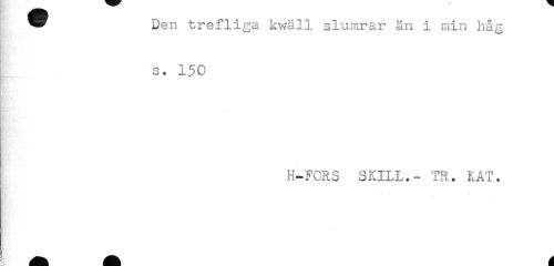 //// * Den trefliga kwåll slumrar än i min håg //// s< 150 //// i //// H-FCRS SKILL.- TR. KAT. ////